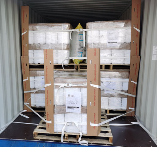 客户首次涉及到加固理论及现场产品的加固, 推荐的符合国际加固要求(CTU Code要求)的加固方案 Anchor lash。产品打托,客户现场的产品是50L塑料桶,2层打托,用cc50打包带捆扎。