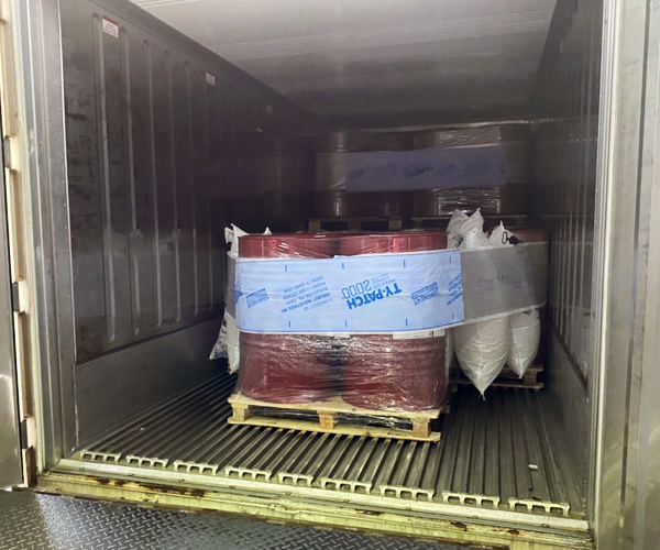 客户是一家危化品货运物流公司。产品为次氯酸钙,包装为47.5kg桶装,冷柜中按三层平铺摆放。